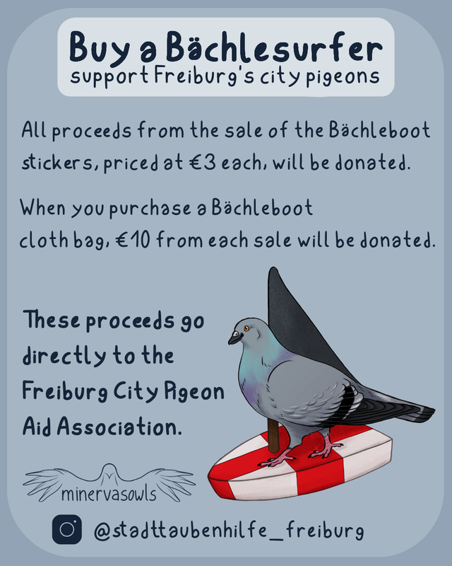 For every bag sold, I donate €10 to the City Pigeon Association from Freiburg i. Br., Germany.